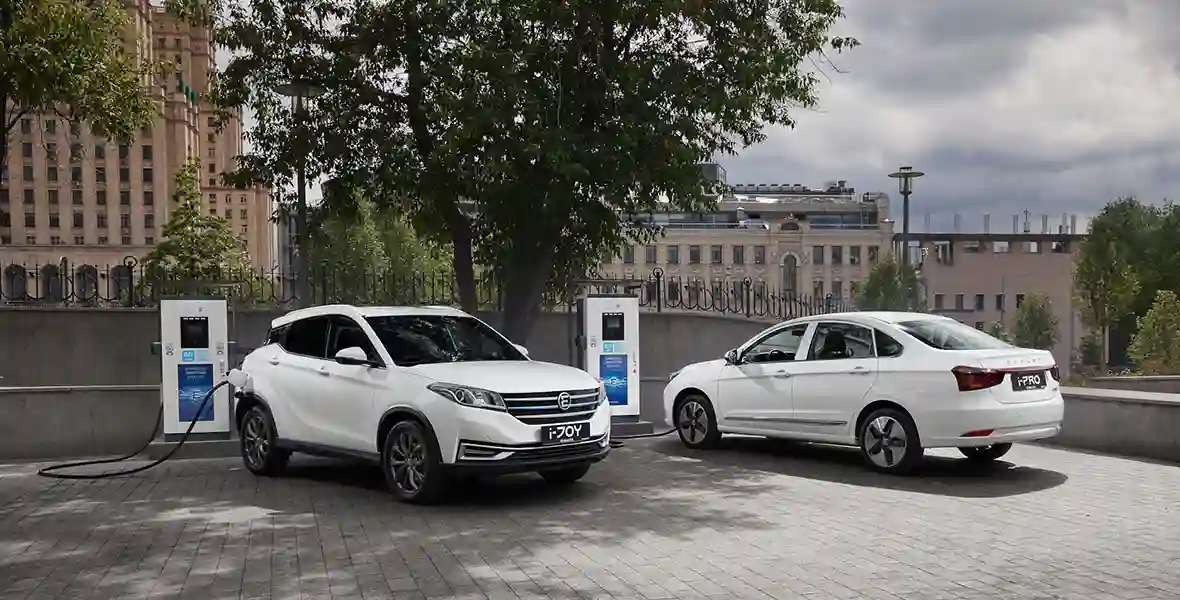 Автомобили Evolute заряжаются от фирменных зарядных станций. Фото: Evolute