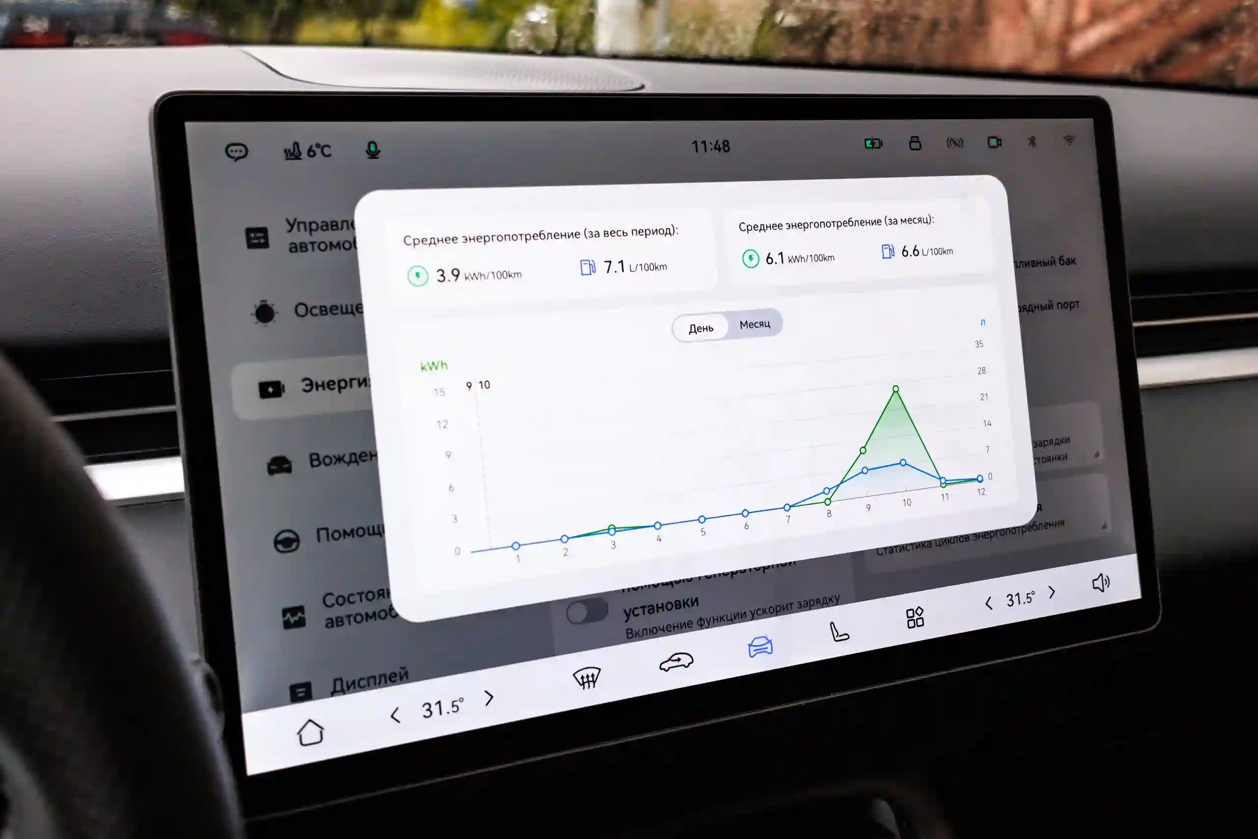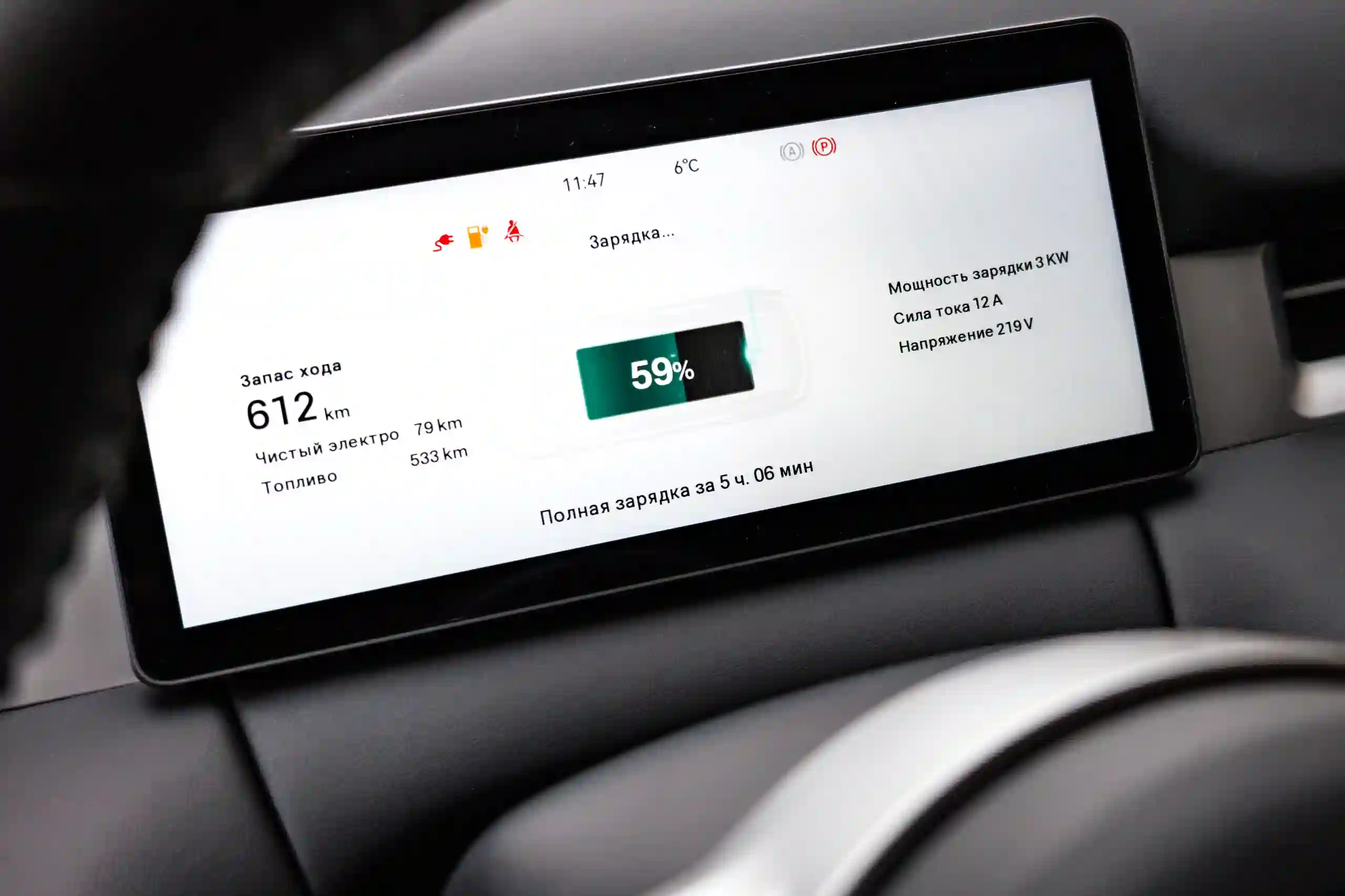 Новый EVOLUTE i‑SPACE оборот вокруг Москвы по МКАДУ на чистом электричестве у нас совершил даже не напрягаясь. При полном заряде батареи он показывал запас хода в 165 км и по факту проехал более 130 километров, прежде чем переключился на бензин. Для машины, которая на нашем рынке позиционируется как самый доступный «народный» гибрид, это солидное достижение. С такой автономностью и при наличии самой простой 7-киловаттной гаражной зарядки или станции у загородного дома уже можно обходиться и без визитов на АЗС, чем, кстати, с успехом и пользуются некоторые обладатели куда более дорогих «Лисянов».