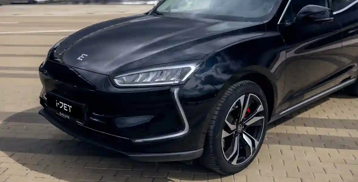 Из-за приземистого силуэта с покатой крышей EVOLUTE i‑JET не кажется крупным, хотя длина у него немаленькая — 4710 мм. При этом уже в стандартном оснащении (i‑JET продается в единственной комплектации) — 20-дюймовые колеса. А отличия от Seres Aito М5 сводятся к иному оформлению передней и задней светотехники и отсутствию решетки радиатора. Это неспроста!